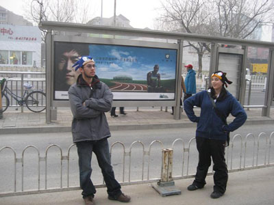 Jade and I noticed a bus stop that had a huge advertisement with two athletes and a running track, which led towards the Beijing Olympic Stadium that brought back memories of the intro video of Mario and Sonic.