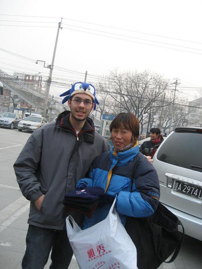 Whilst staring at the poster an old crazy lady grabbed my arm and tried to harass me into buying fake Olympic merchandise, we politely declined her offer and asked for a photo with her instead. She was hesitant but eventually said yes.